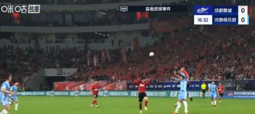 判例二:中超联赛事第29轮,成都蓉城VS河南俱乐部。竞赛第48分钟,成都蓉城队传禁区,球疑似接触河南俱乐部11号队员(阿奇姆彭)臂部,裁判员员未裁决手球违例,视频裁判未介入。