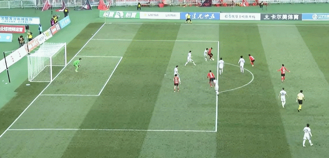 85’陈彬彬横传,贾博琰迎球打门命中,但裁判员吹陈彬彬越位在先