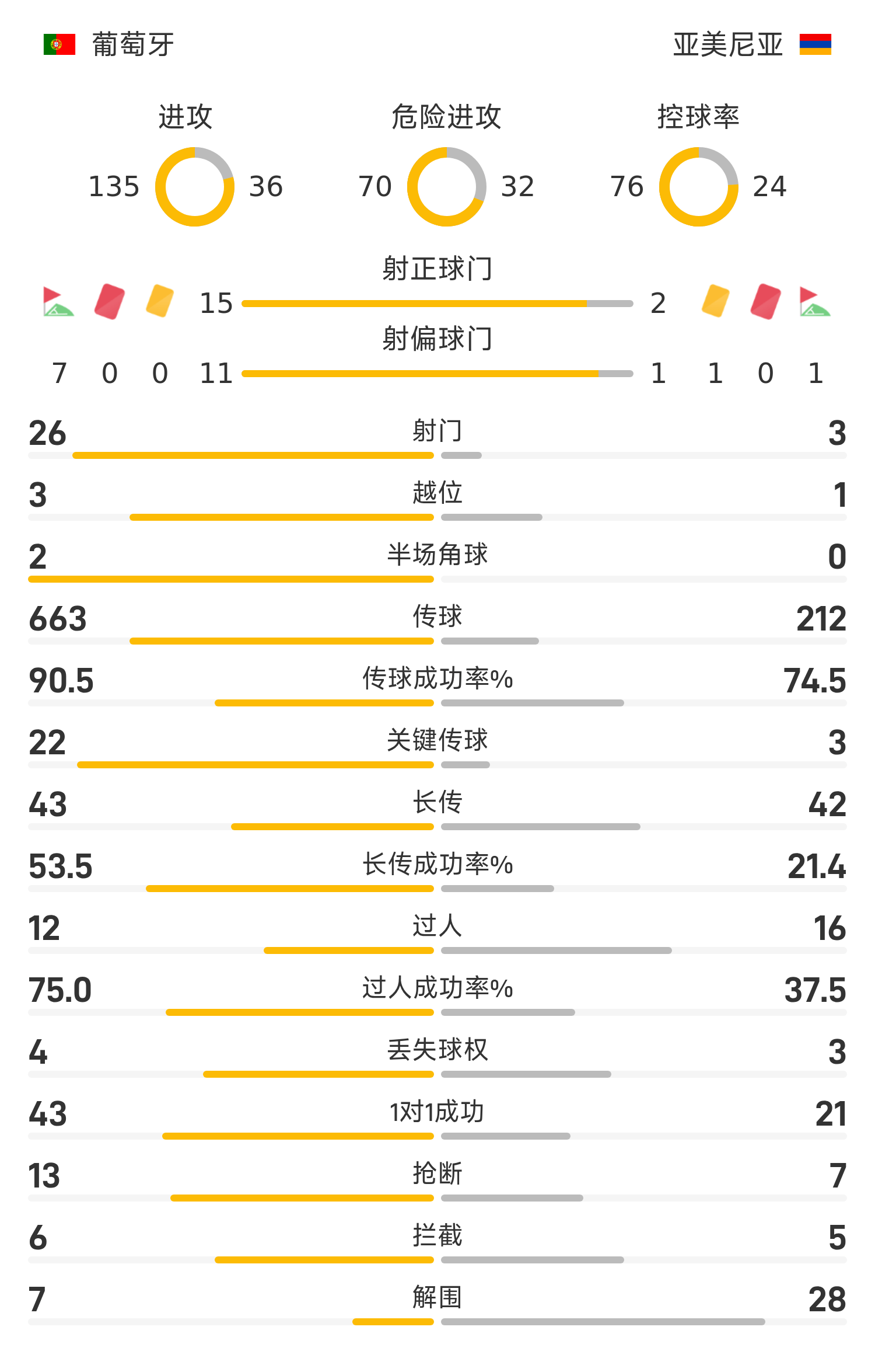 6686体育app11月16日讯 26赛季世欧预分组赛F组第10轮,葡萄牙主队场以9-1狂胜亚美尼亚。维加为葡萄牙闪击,随后斯珀特森为亚美尼亚扳平局赛果分;接下来的竞赛里,葡萄牙队有如神助,内维斯和B费相继完成帽子戏法,拉莫斯送出传射,孔塞桑为球队锦上添花。葡萄牙以4胜1平1负积13分,斩获F组第一,直接获得2026美加墨世杯赛的入场券。