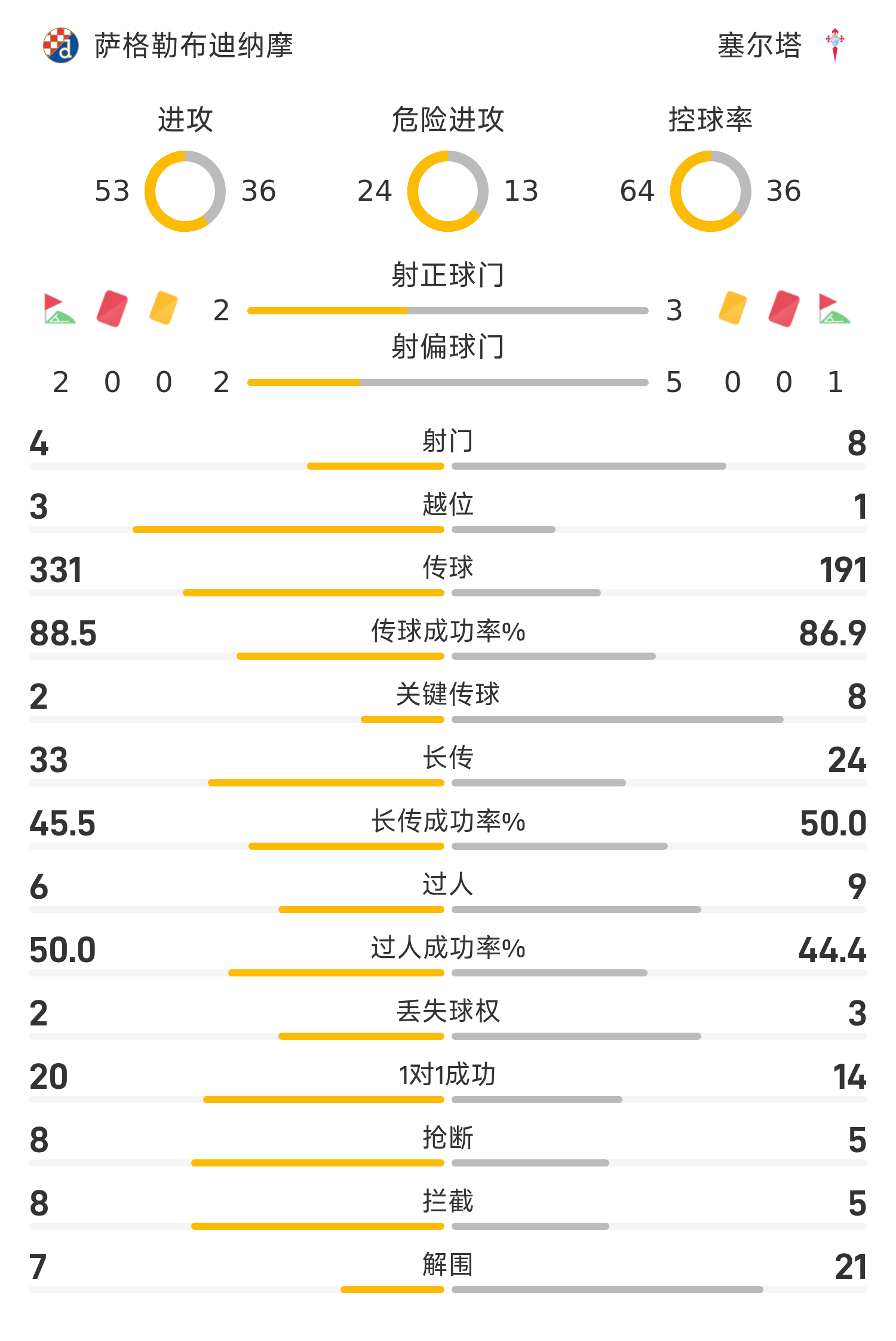 萨格勒布迪纳摩首发阵容:33-尼维斯蒂奇、28-凯瑟林、26-麦肯纳、3-戈达、36-多明格斯、8-扎伊茨、27-米西奇、77-柳比西奇、17-库列诺维奇、11-霍查、21-利西卡