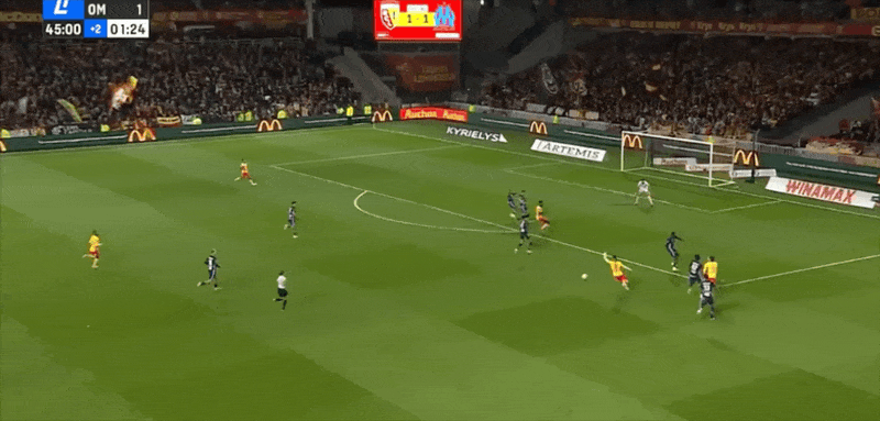 90+2’桑加雷单刀直面守门员被扑,朗斯无缘提前锁定胜局
