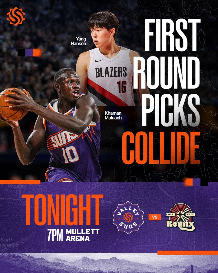 同为首轮秀!媒体晒马鲁阿奇和杨瀚森今日发展联盟对决海报