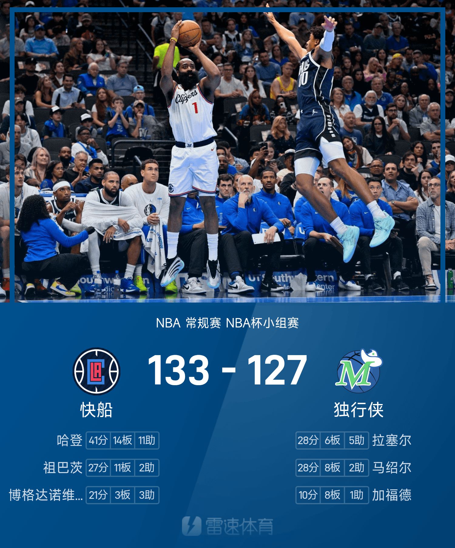梦回火箭登,哈登砍下41分14板11助的三双,率领快船双延长赛取胜。