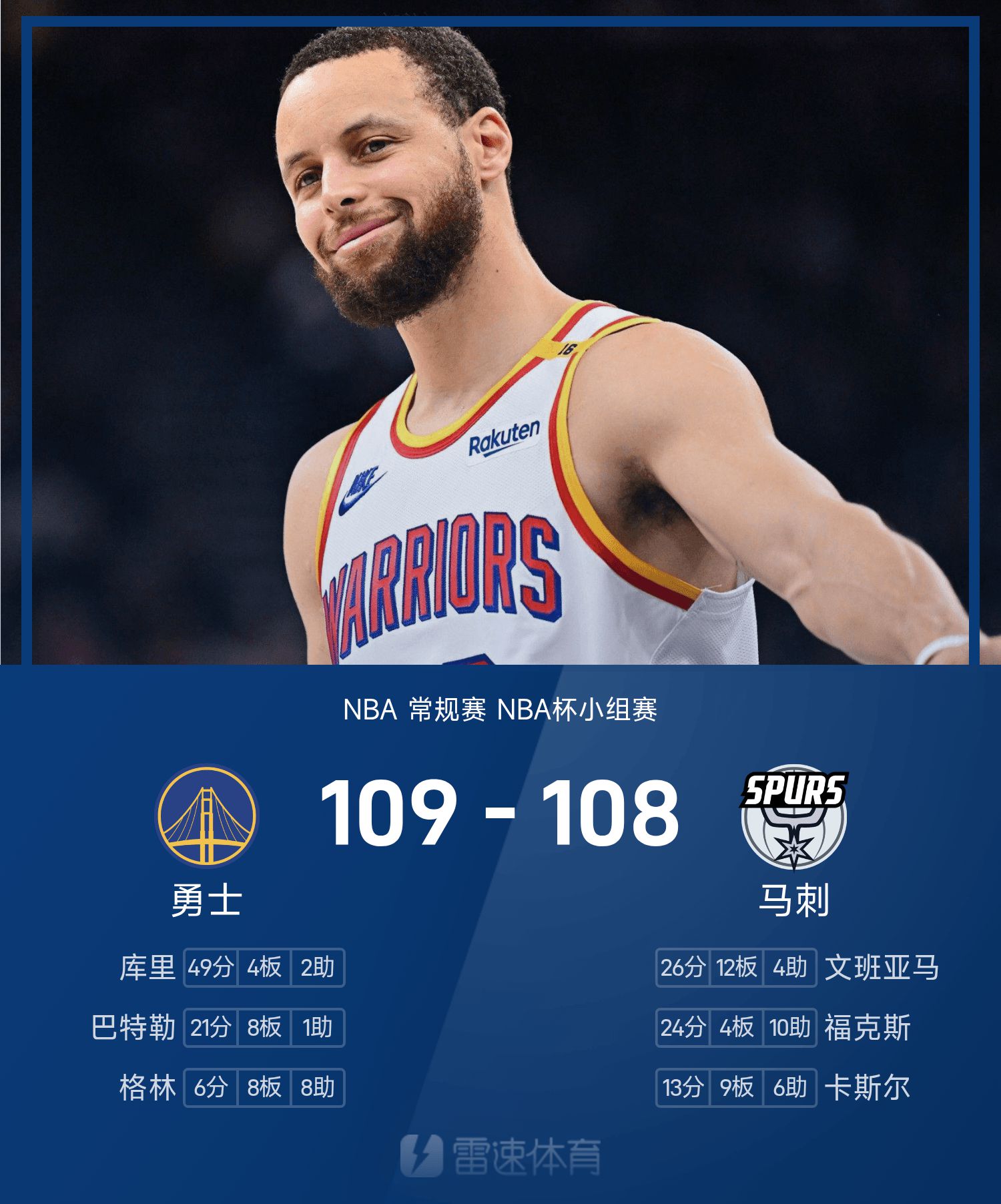 关键罚篮,库里砍下全场最高的49分外加4抢篮板2助攻,率领勇士险胜马刺。