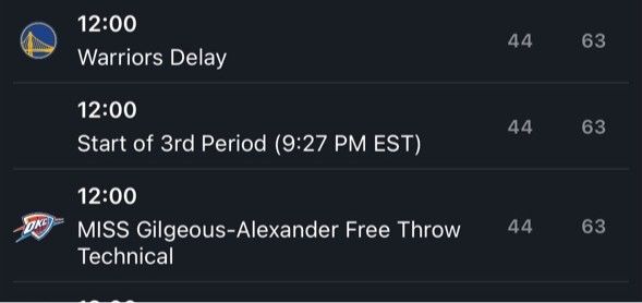 从NBA官网play-by-play中可以看到,在第三节开端前,亚历山大获得了一次技术罚篮的机会,但他错失了这次罚篮。