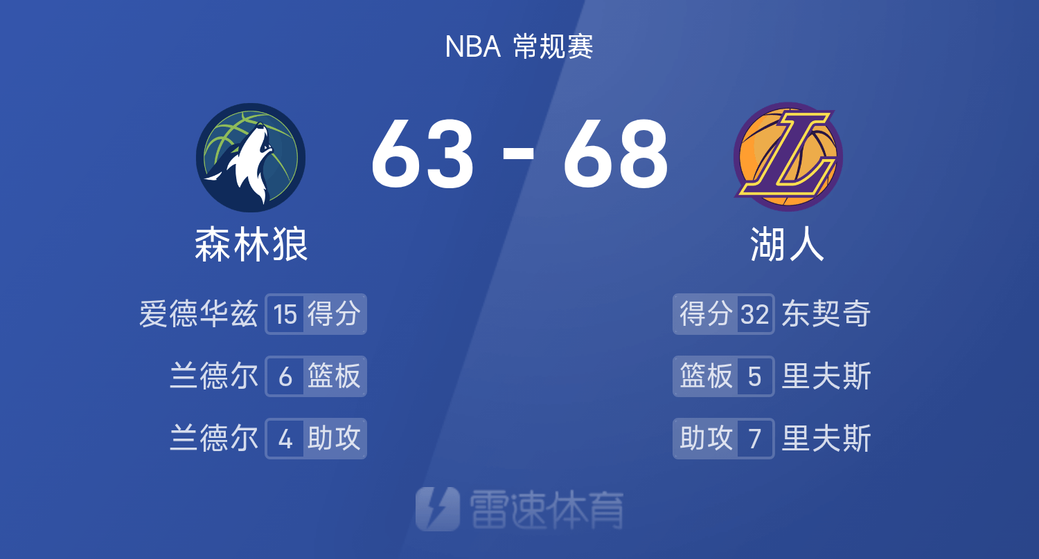 NBA半场:东契奇爆轰32分,湖人68-63领跑位森林狼